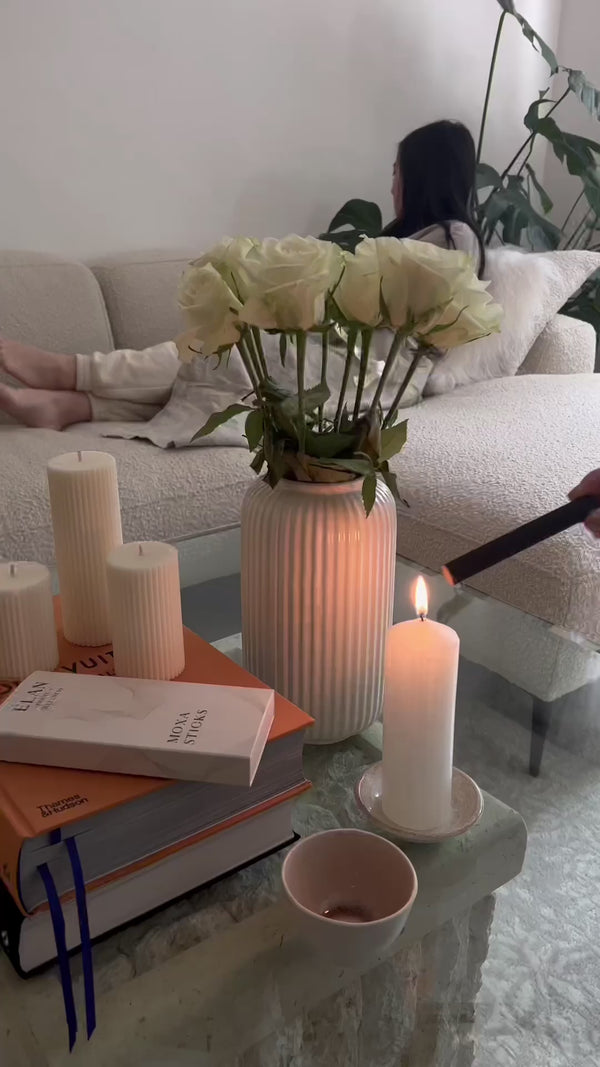Maintain a safe distance with the lit moxa stick, keeping the moxa stick 5cm away from your body. Never touch the lit end of the moxa stick directly on to your skin. You will feel warm from within as you slowly wave the lit moxa stick across your body. Tap off any excess ash from the lit end of the moxa stick regularly into your ceramic or glass jar to avoid it falling on to your skin. This ensures that the moxa stick stays warm but also keeps you free from burns. Moxibustion therapy is usually performed for 15 minutes.
