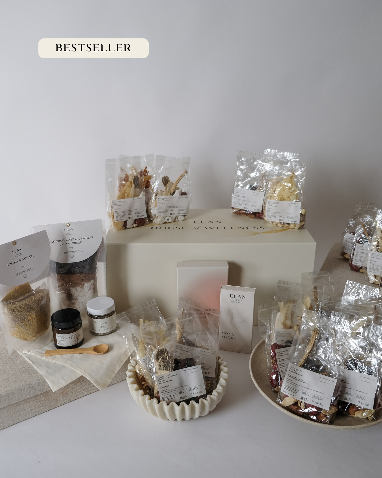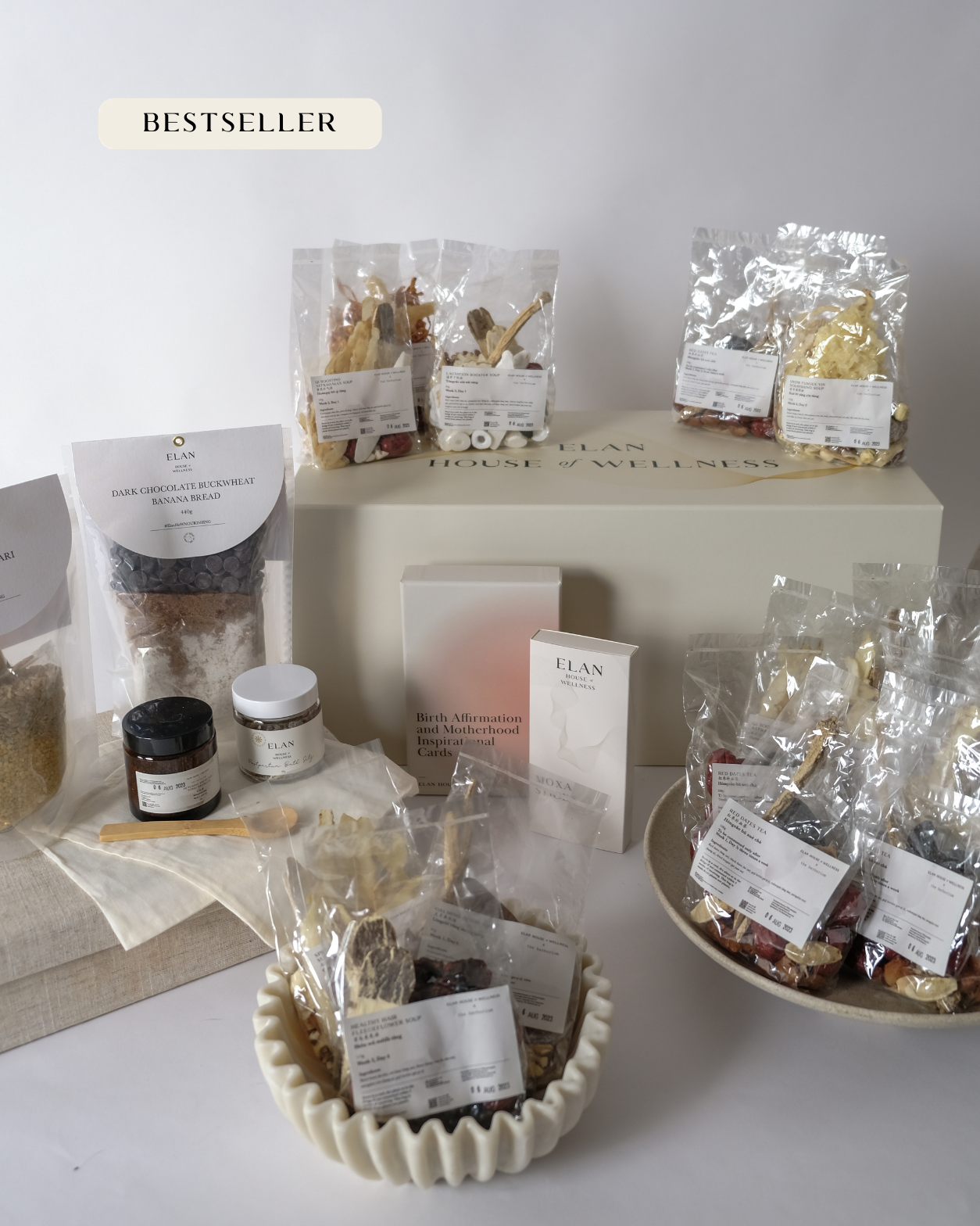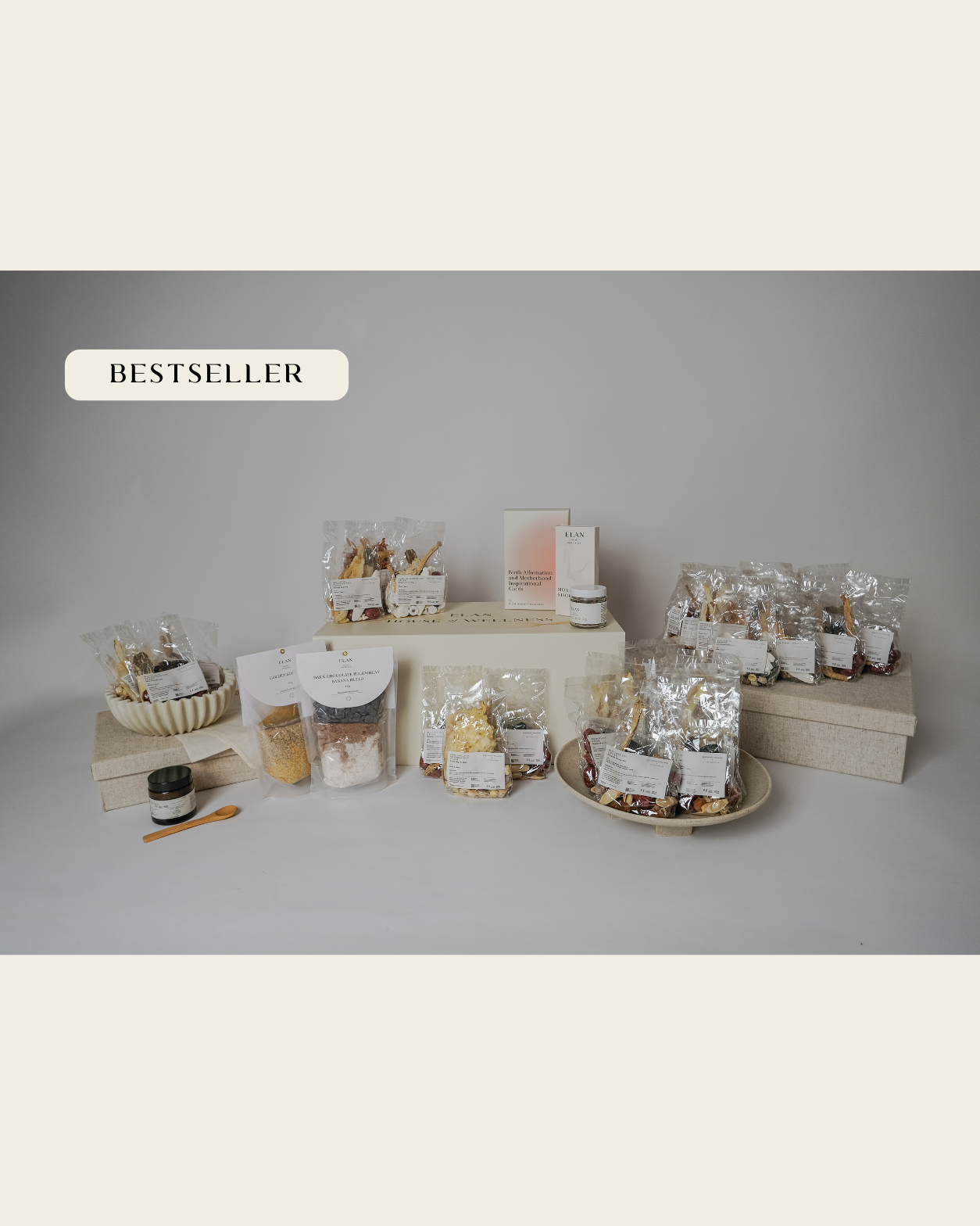 You'll receive 28 herbal packs to support you through each day of recovery. Plus two nourishing dry pantry mixes of your choice, a postpartum bath sitz, mother warming moxa sticks, affirmation cards, and a detailed guide to walk you through everything. It's complete care for your first month!